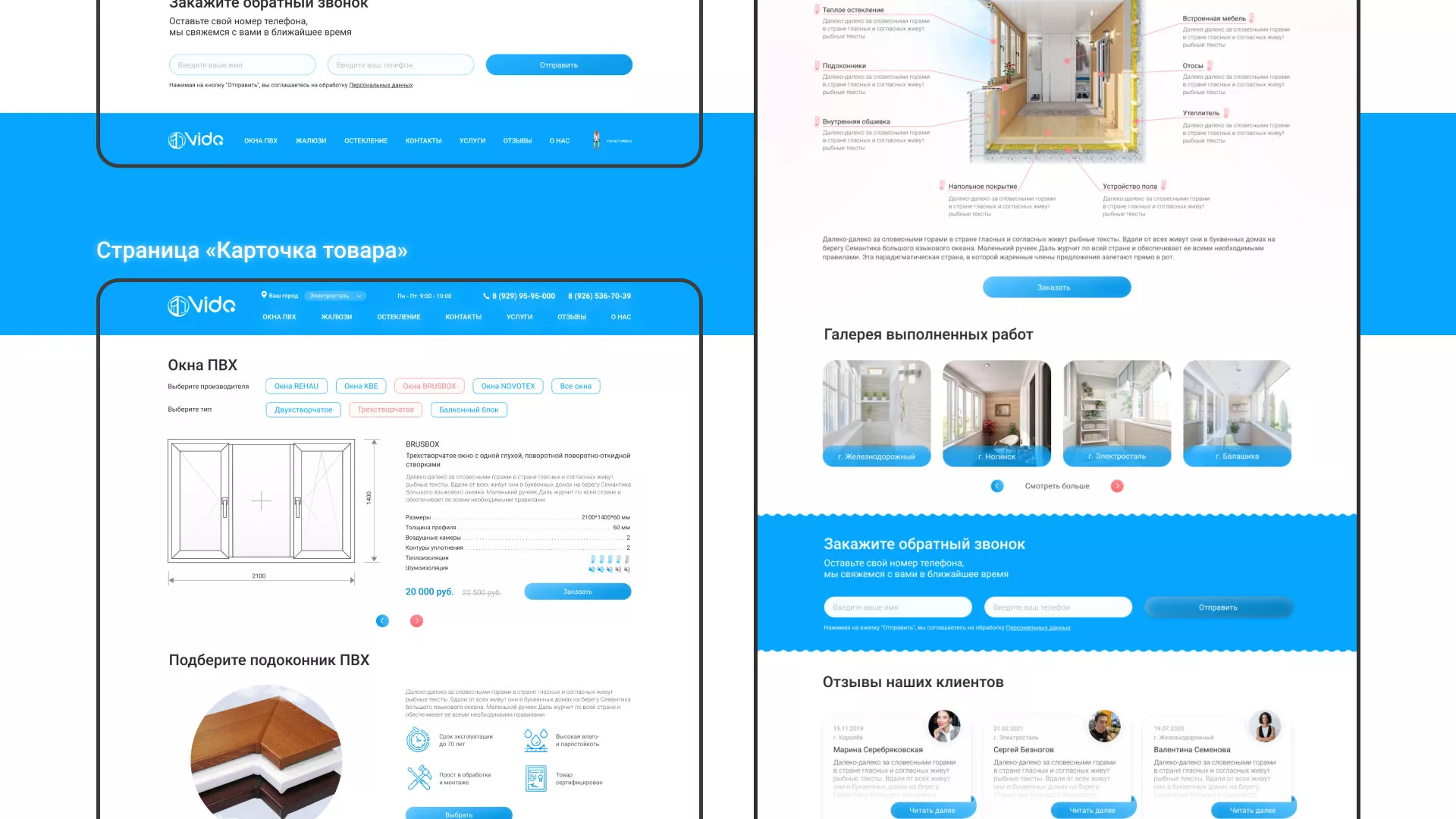 Задачей по проекту было — разработать светлый, дружелюбный дизайн сайта-каталога компании «Окна ВИДО» в Венёве, интерфейс взаимодействия с пользователем и проработать внутренние страницы, наглядно отобразив информацию иллюстрациями.